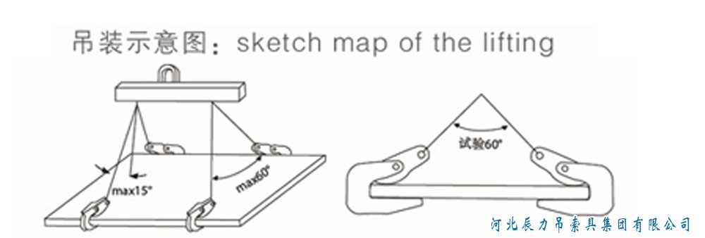 1.橫吊起重鉗的基本用法如圖所示,通過橫梁連接,組成兩對橫吊起重鉗。特別提示:橫吊起重鉗的安全工作載荷是指一對(兩只)橫吊鉗的載荷;起吊鋼板厚度是指吊鉗安全起吊鋼板的厚度范圍,起重吊鉗的實際開口度應該大于鋼板的厚度。起吊前必須檢查鋼板的重量和板厚是否與起重鉗匹配。